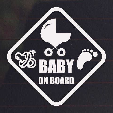 Keep your little one safe on the road with this adorable Baby on Board vinyl decal. Designed with a cute baby face and pacifier, this sticker not only looks stylish but also alerts other drivers to drive with extra care around your vehicle. A must-have for new parents, baby shower gifts, or anyone who wants peace of mind while traveling with their child.