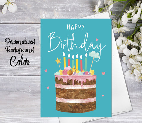 Supperb Personalized Greeting Card - Birthday Cake Card Custom Birthday Card Add Name Personalize Color Happy Birthday Greeting Card