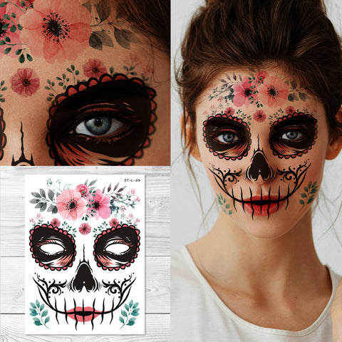 Supperb Halloween Face Tattoo Day of the Dead Sugar Skull Wildflower Temporary Face Tattoo Kit