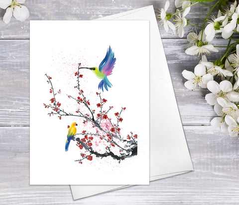 Floral Flower Cherry blossoms Blooming Watercolour Card Flower Greeting Cards Anniversary Mother's day Valentine's Day Blank Greeting Card