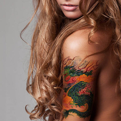 Supperb Large Temporary Tattoos - Gorgeous Green Dragon in Clouds
